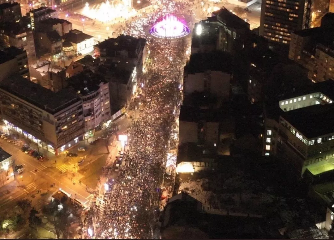Svijeće za Olivera Ivanovića zapaljene su i na Slaviji. Kolona od desetak hiljada učesnika krenula je u 18 sati sa Studentskog trga, a predvodili su je predstavnici Lokalnog fronta koji su od 12. januara pješačili do Beograda.