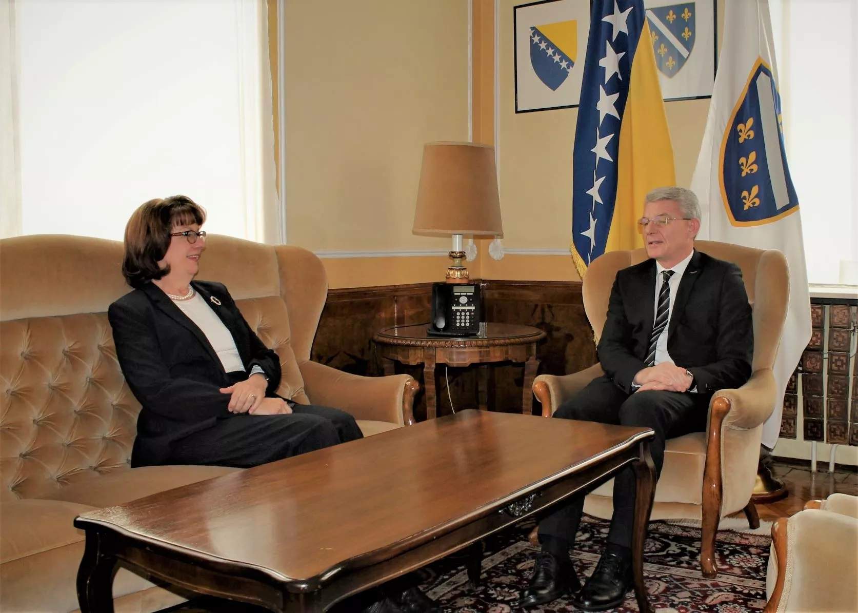 SARAJEVO, (Patria) - Član Predsjedništva Bosne i Hercegovine Šefik Džaferović primio je danas ambasadoricu Sjedinjenih Američkih Država Maureen Cormack.