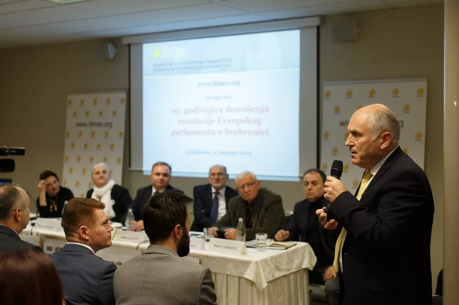 Na okruglom stolu u Ljubljani danas su govorili još i Jelko Kacin, bivši predsjednik Ustavnog suda Slovenije dr. Ernest Petrič, član ratnog Predsjedništva RBiH i profesor sa Univerziteta u Sarajevu dr. Mirko Pejanović, predsjednica Udruženje majki enklava Srebrenica i Žepa Munira Subašić, njena zamjenica Kada Hotić te predsjednik Udruženje žrtava i svjedoka genocida Murat Tahirović.