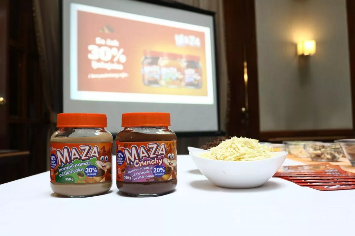 Maza je premium proizvod izrađen od sastojaka vrhunske kvalitete s visokim procentom lješnjaka i bez palminog ulja. Na tržištu će biti dostupan u pakovanjima sa 20 posto i 30 posto lješnjaka, te u crunchy verziji sa hrskavim kuglicama žitarica. Važno je istaći da "Maza" za razliku od drugih proizvoda iste klase sadrži 30 posto manje šećera.