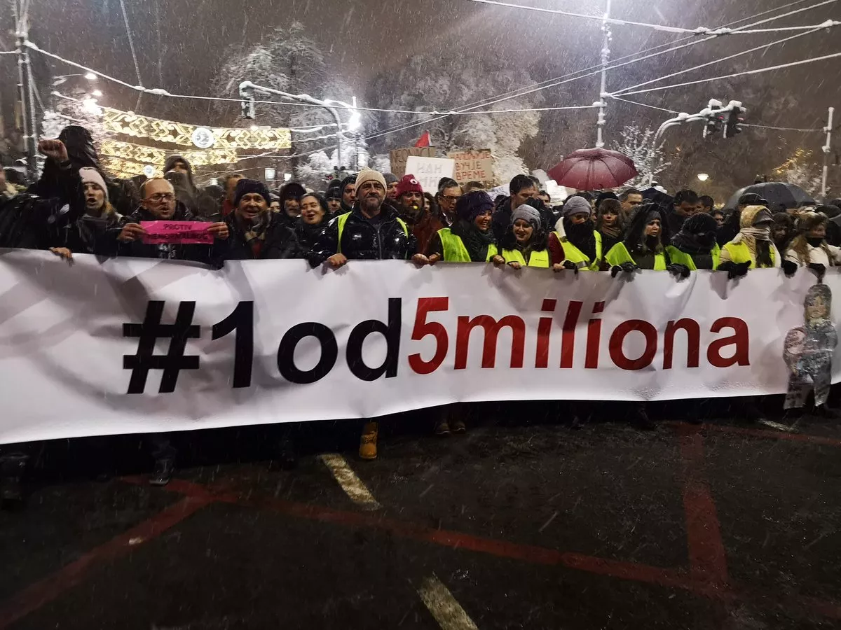 BEOGRAD, (Patria) - Organizatori protesta "Jedan od pet miliona" pozvali su danas predsjednika Srbije Aleksandra Vučića da do subote, 29. decembra, u 18 časova smijeni ministra unutrašnjih poslova Nebojšu Stefanovića, zbog "kriminalizacije društva i vrijeđanja demonstranata".