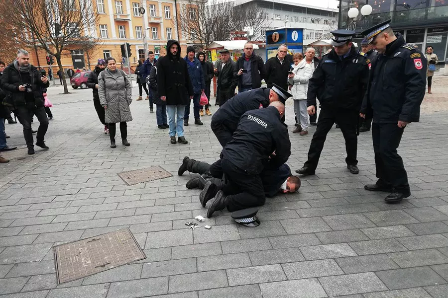 Uhapšen je i Njegoš Tomić, nekadašanji štrajkač iz parka “Mladen Stojanović”, a osim toga policija je lisice na ruke stavila još nekim građanima.