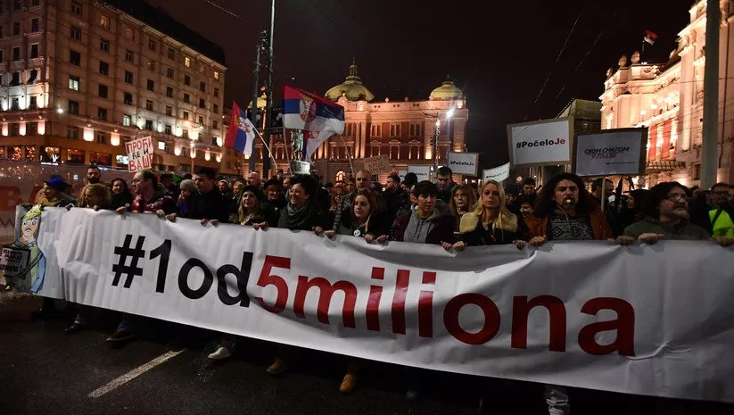 Prošle subote protest je održan pod parolom „Jedan od pet miliona“ , a povodom je bila poruka predsjednika Srbije i lidera SNS-a Aleksandra Vučića da neće ispunjavati zahtjeve opozicije, „makar se na protestima skupilo i pet miliona ljudi“.