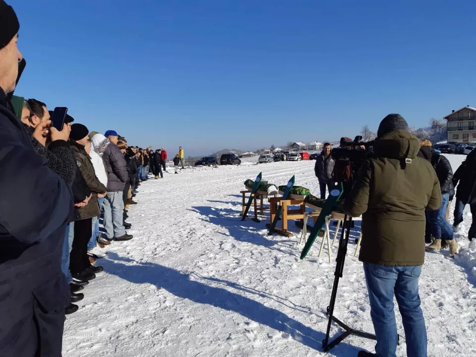 Prije dženaze hiljade građana, poznanika i prijatelja porodice okupile su se ispred porodične kuće da bi još jednom odali počast djeci koju je ubio njihov otac Admir Sović.