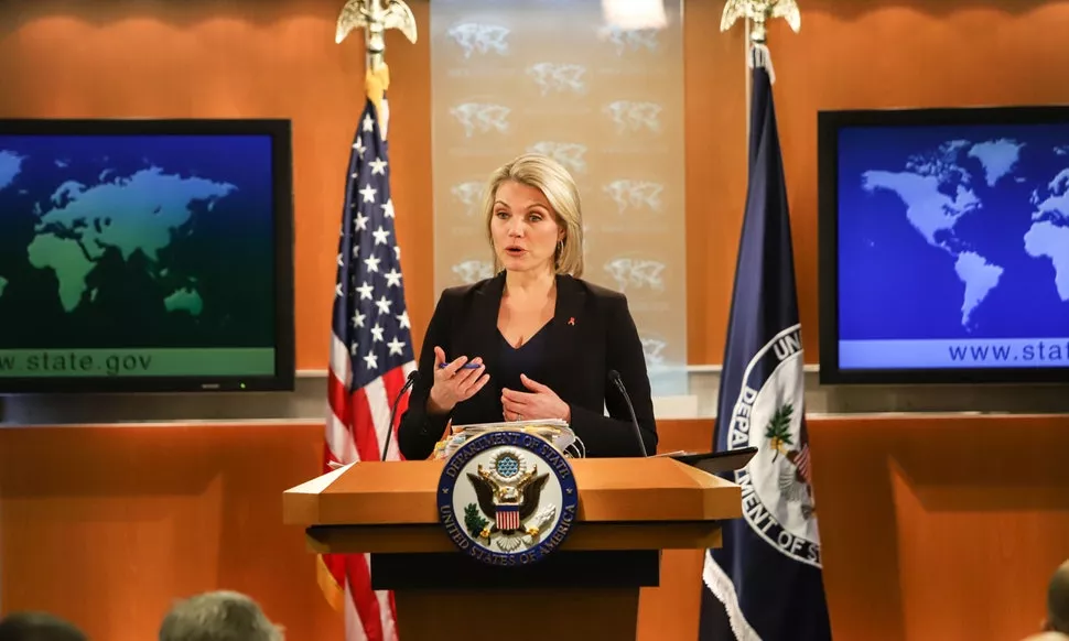 Nauert, bivša voditeljica i novinarka televizije Fox News, nema prethodno političko niti zakonodavno iskustvo. Postala je glasnogovornica State Departmenta u aprilu 2017. a ove godine imenovana je za vršiteljicu dužnosti podsekretarke za javnu diplomatiju i odnose s javnošću.