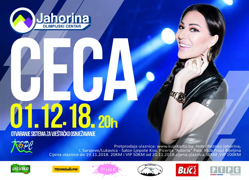 (Patria) - Još 13. septembra uprava Olimpijskog centra Jahorina najavila je veliki solistički koncert Svetlane Cece Ražnatović, a bilbordi na kojima se najavljuje koncert povodom puštanja u rad sistema za pravljenje vještačkog snijega već su odavno raspoređeni širom Republike Srpske.
