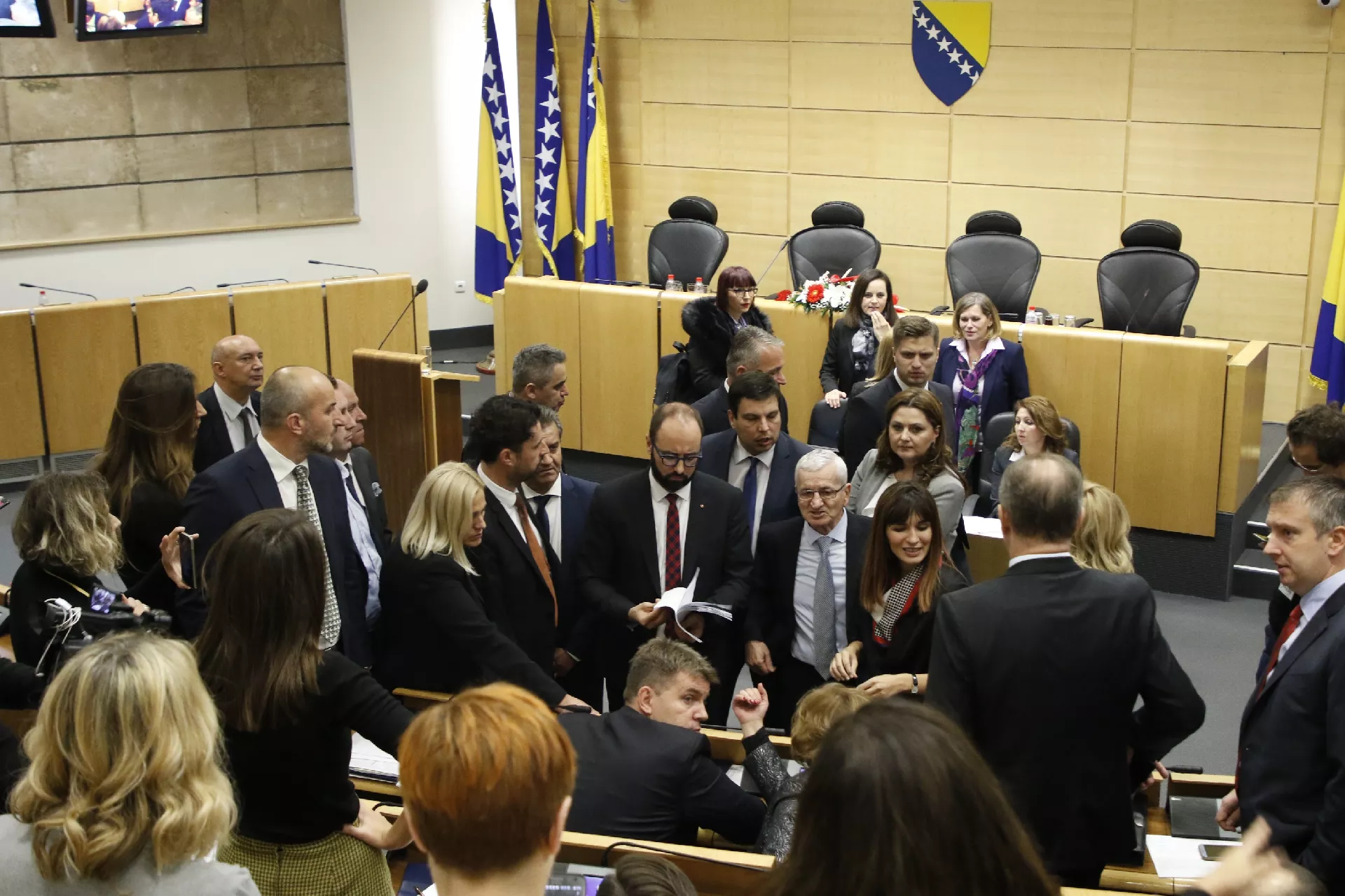 No, Edin Mušić je kazao da oni nisu dobili pisani trag o formiranju Klubova. Mašić je tražio pauzu od 15 minuta, ali je Mušić kazao da on odgađa raspravu. Izabrani zastupnici SDA i HDZ-a su napustili sjednicu, a drugi su ostali u sali. Njavjerovatnije sjednica će biti nastavljena i to bez SDA i HDZ-a, s predsjedavat će najstariji zastupnik.
