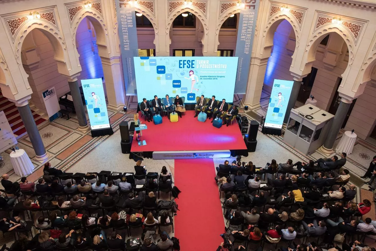 SARAJEVO, (Patria) - Pod okriljem EFSE turnira u poduzetništvu, danas je u Vijećnici upriličena dodjela sredstava poduzetnicima iz inkubatora Fondacije Mozaik i Sarajevske regionalne razvojne agencije SERDA.