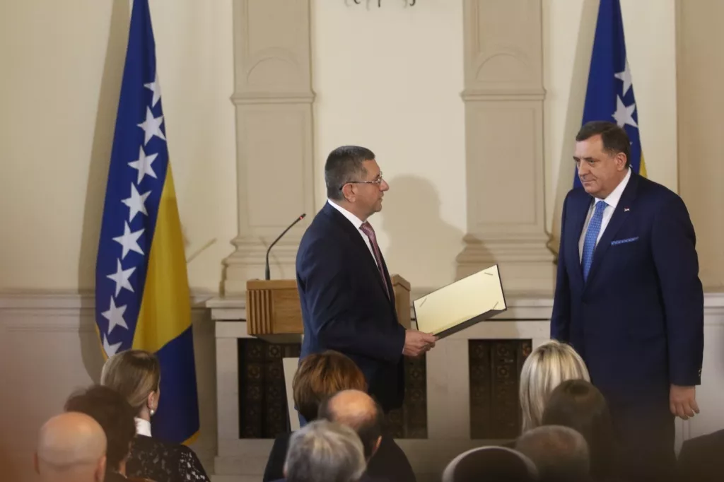 SARAJEVO, (Patria) - Novoizabrani članovi Predsjedništva Bosne i Hercegovine položili su danas zakletvu u zgradi državnog Predsjedništva u kojoj je održana i konstituirajuća sjednica. Milorad Dodik obraćajući se na svečanoj sjednici kazao da mu je čast preuzeo dužnost člana Predsjedništva BiH.