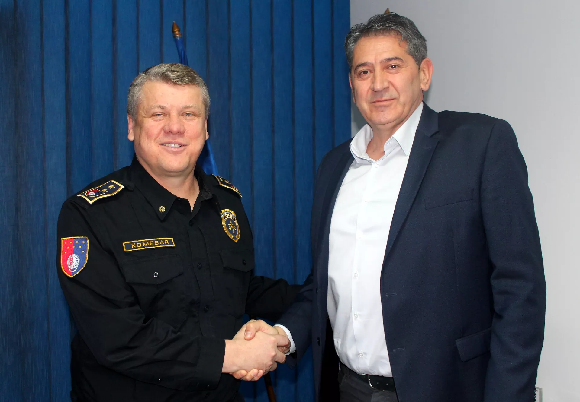 SARAJEVO, (Patria) - Mevludin Halilović, komesar Uprave policije Ministarstva unutrašnjih poslova Kantona Sarajevo posjetio je danas Službu za poslove sa strancima i tom prilikom se sastao sa direktorom Slobodanom Ujićem.