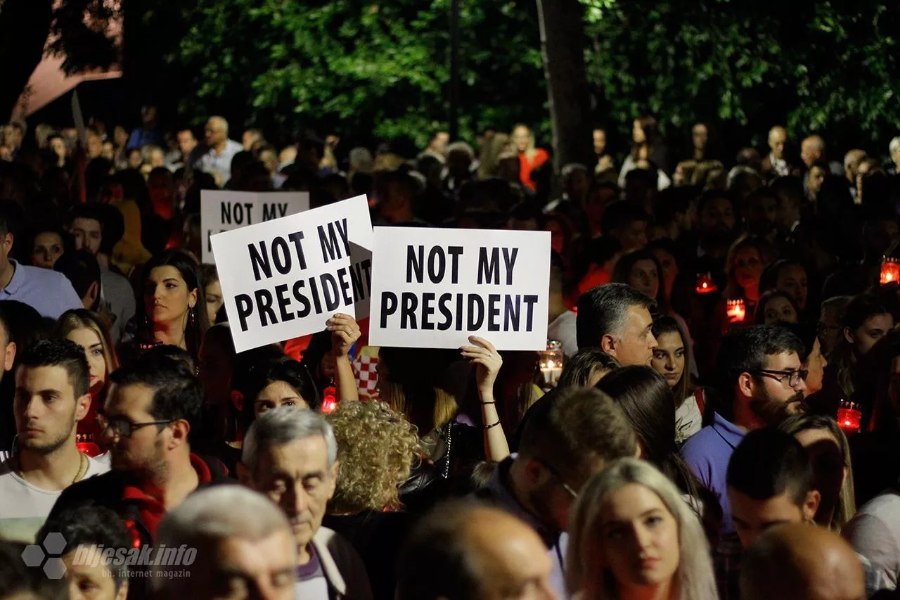 Nezadovoljni građani su ispred kancelarije Predsjedništva BiH iz reda hrvatskog naroda u Mostaru zapalili svijeće i poručili da je demokratija umrla, te da Komšić nije njihov predsjednik.