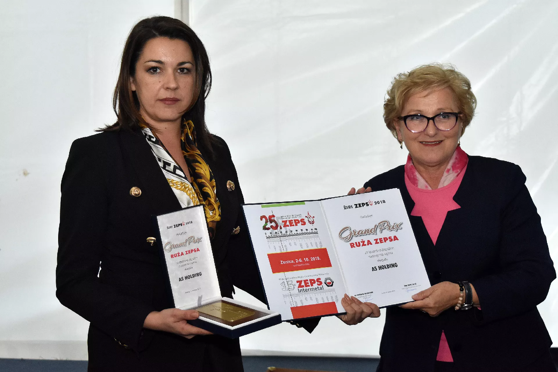 ZENICA, (Patria) - Na sinoćnjoj manifestaciji ovogodišnjeg, 25. po redu Zeničkog privrednog sajma „ZEPS“, dodijeljene su nagrade za najuspješnije izlagače. Grand prix nagradu „Ruža ZEPS“-a osvojio je AS Holding koji je na sajmu učestvovao sa svojim najpoznatijim brendovima; Zlatna džezva, Bosanski lokum, TOPS, Oaza i mnogim drugim koje su u sastavu renomiranih kompanija. Ove godine organizator i domaćin bila je kompanija Vispak dd, a nagradu „Ruža ZEPS“-a preuzela je direktorica Vispaka Nina Bijedić-Mujanović.