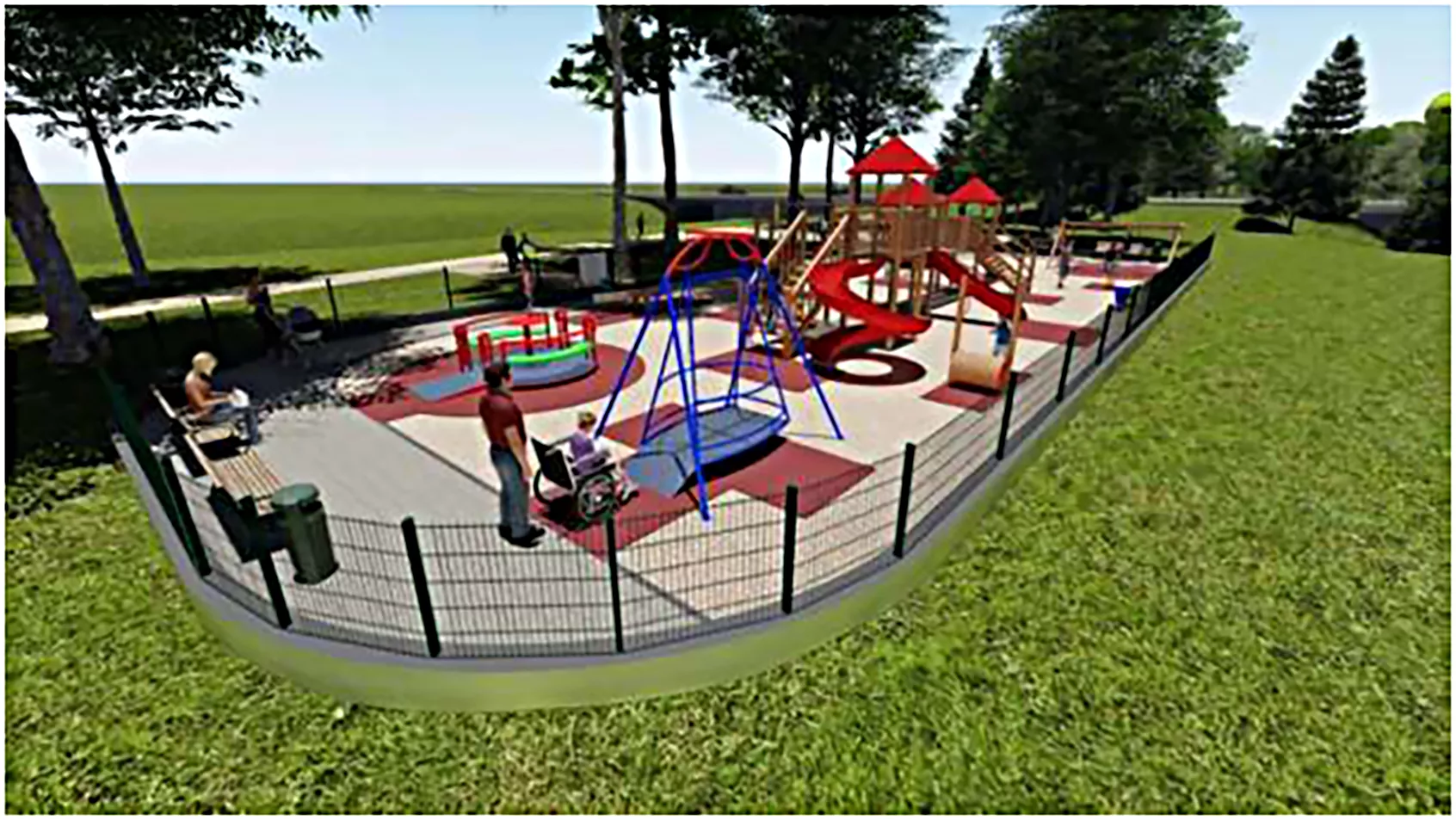 Igralište će sadržavati i sprave za djecu sa invaliditetom. Na njemu će se nalaziti jedna ljuljačka za korisnike sa invalidskim kolicima, jedna klackalica za korisnike sa invaliditetom, te jedno kombinovano igralo koje se sastoji od kućice, tunela ispod kućice, širokog tobogana, rampe i prostrane platforme za mogućnost odlaganja invalidskih kolica.
