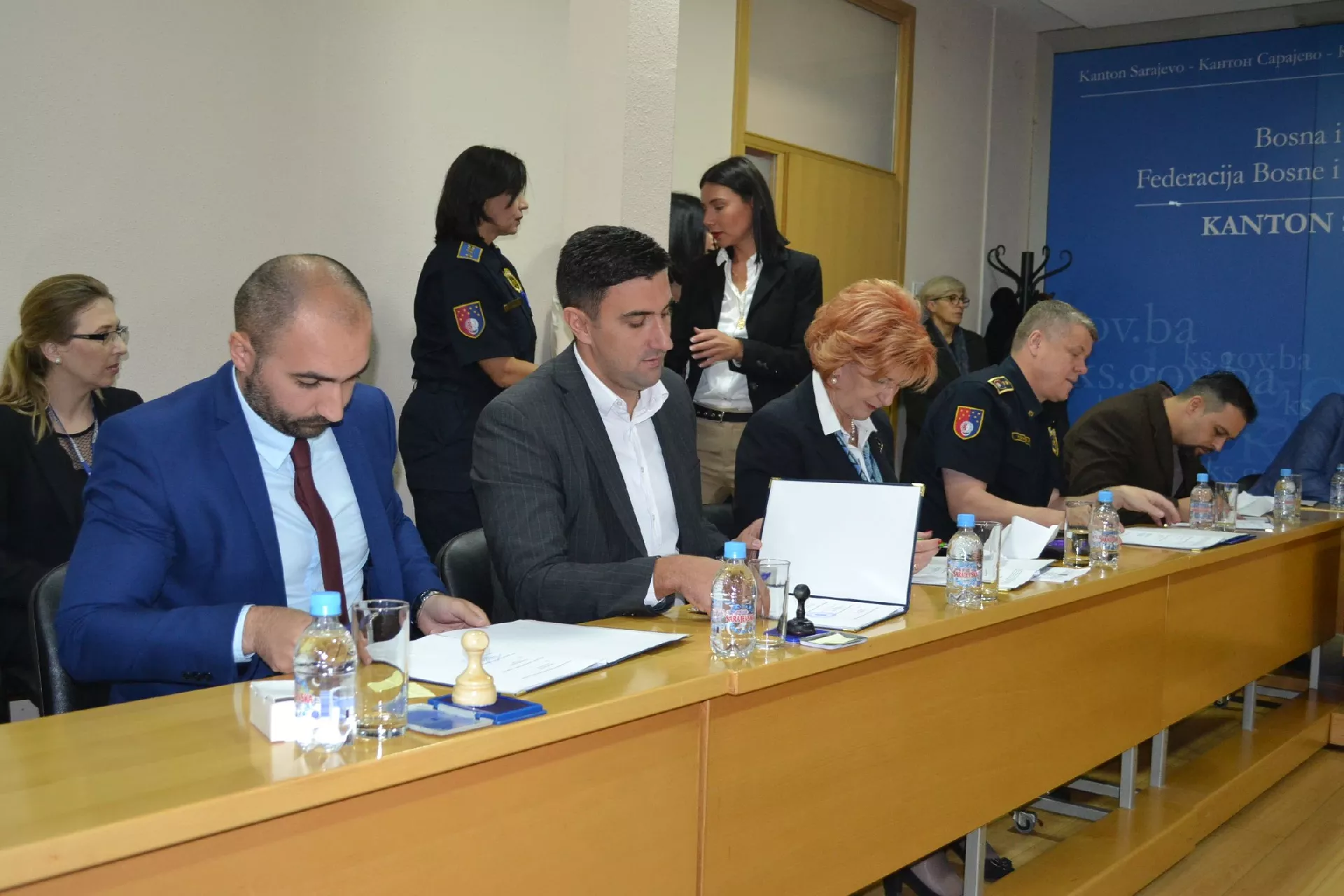 SARAJEVO, (Patria) - Protokol o saradnji i postupanju u slučajevima protivpravnog ponašanja na štetu djece u Kantonu Sarajevo danas su potpisali ministrice za rad, socijalnu politiku, raseljena lica i izbjeglice i zdravstva KS Amela Dautbegović i Zilha Ademaj, ministri unutrašnjih poslova, pravde i uprave Vedran Mulabdić i Mario Nenadić, policijski komesar Mevludin Halilović, direktori javnih ustanova Kantonalnog centra za socijalni rad, Odgojnog centra KS i Zavoda za pružanje besplatne pravne pomoći Enes Šabić, Nermin Mušikić i Velija Nuhanović, predsjednica Općinskog suda Janja Jovanović, te predstavnici Kantonalnog tužiteljstva, Kantonalnog suda i Ministarstva za obrazovanje, nauku i mlade KS. Potpisivanju je prisustvovao i Šef Misije OSCE-a u BiH, ambasador Bruce G. Berton.