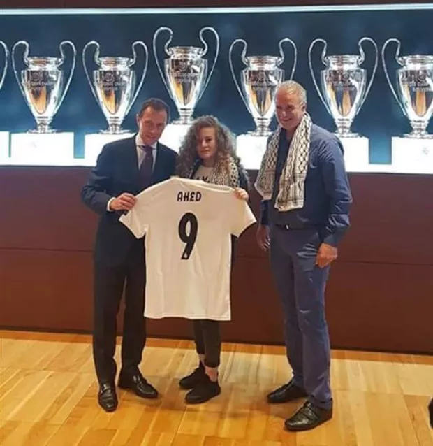 Butragueno je 17-godišnjoj Ahed Tamimi uručio dres Reala sa brojem devet i njenim imenom iznad broja, a uručenje je upriličeno u sali u kojoj je izloženo 13 trofeja evropskog prvaka koje je osvojio madridski klub.