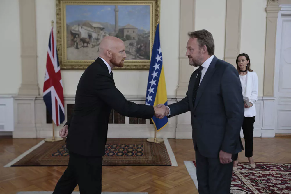 - Veliko mi je zadovoljstvo i privilegija, da u ime Njenog veličanstva kraljice Elizabete druge, preuzmem dužnost britanskog ambasadora u Bosni i Hercegovini. Odnosi naše dvije zemlje su bliski i dugotrajni. To je partnerstvo, zasnovano na uzajamnom povjerenju, iskrenosti i praktičnoj saradnji. Imao sam sreću da dođem na ovu poziciju nakon mog predanog i energičnog prethodnika Edwarda Fergusona. Vlada Ujedinjenog Kraljevstva je predano radila kako bi pomogla ovoj zemlji da bude prosperitetna, uključujući i putem Britansko-njemačke inicijative. Ja ću se zaista truditi da nastavim graditi na tim jakim temeljima.