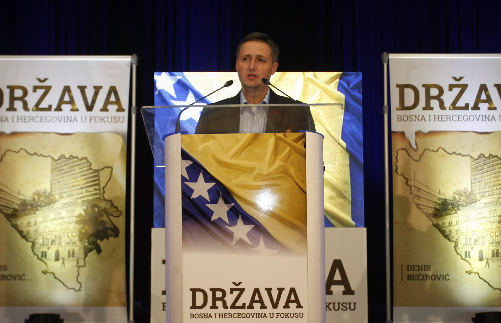 Pored prof. dr. Denisa Bećirovića, na promociji knjige „Država Bosna i Hercegovina u fokusu“ su govorili promotori Saša Magazinović, Jasmin Imamović, Zukan Helez, Ferid Buljubašić, doc. dr. Goran Behmen, Nerkez Arifhodžić, Lana Prlić i doc. dr. Benjamina Londrc.