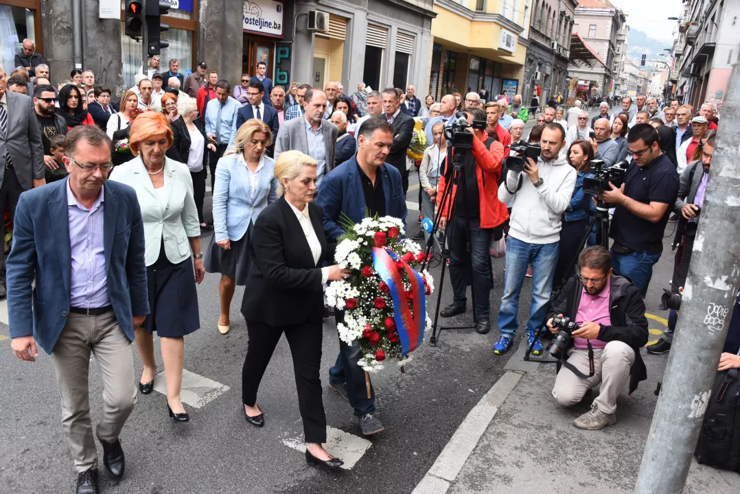 SARAJEVO, (Patria) - Na današnji dan prije 23 godine, s agresorskih položaja iz pravca Trebevića ispaljena je minobacačka granata kalibra 120 mm, koja je pala na sjeverni ulaz u Gradsku tržnicu i tom prilikom ubila 43 naših sugrađana,dok je njih 84 teže i lakše ranila. Tim povodom su porodice, prijatelji, komšije te brojne delegacije, među kojima i Kantona Sarajevo koju je predvodila predsjedateljica Skupštine Ana Babić, polaganjem cvijeća, minutom šutnje i učenjem fatihe odale počast stradalim Sarajlijama. Pored predsjedateljice, delegaciju KS predstavljale su ministrice za rad, socijalnu politiku, raseljena lica i izbjeglice i zdravstva Amela Dautbegović i Zilha Ademaj, ministri za boračka pitanja, pravdu i upravu, kulturu i sport, te finansije Muharem Fišo, Mario Nenadić, Mirvad Kurić i Jasmin Halebić.