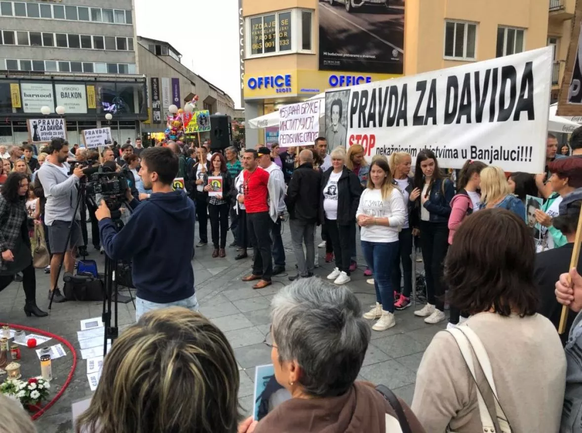 BANJA LUKA, (Patria) - Večeras je u Banja Luci na Trgu Krajine (Davidov trg) predstavljen međunarodni advokatski tim kojeg je angažirala porodica ubijenog mladića Davida Dragičevića. Davidov otac Davor Dragičević već 150 dana zajedno sa članovima grupe Pravda za Davida organizira proteste na kojima traži da se otkriju počinioci ubistva, ali i svi oni koji su sakrili ubistvo. Slučaj se vodio kao utapanje, da bi nakon velikog pritiska javnosti, medija i porodice Okružno tužilaštvo Banja Luka početkom jula slučaj prekvalifikovalo u ubistvo po nepoznatom počiniocu.