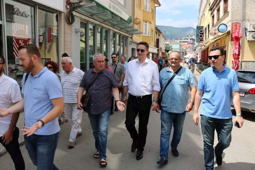 MOSTAR, (Patria) - Kandidat za člana Predsjedništva BiH Denis Bećirović u okviru posjete Hercegovini posjetio je Mostar gdje je razgovarao sa građanima ovog grada, saopšteno je iz SDP-a.