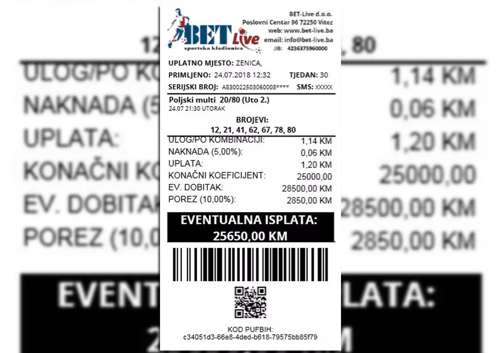 Kladionice Bet-Live & 5 Plus objavle su tiket sretnog dobitnika, ali su zaštitile njegov identitet.