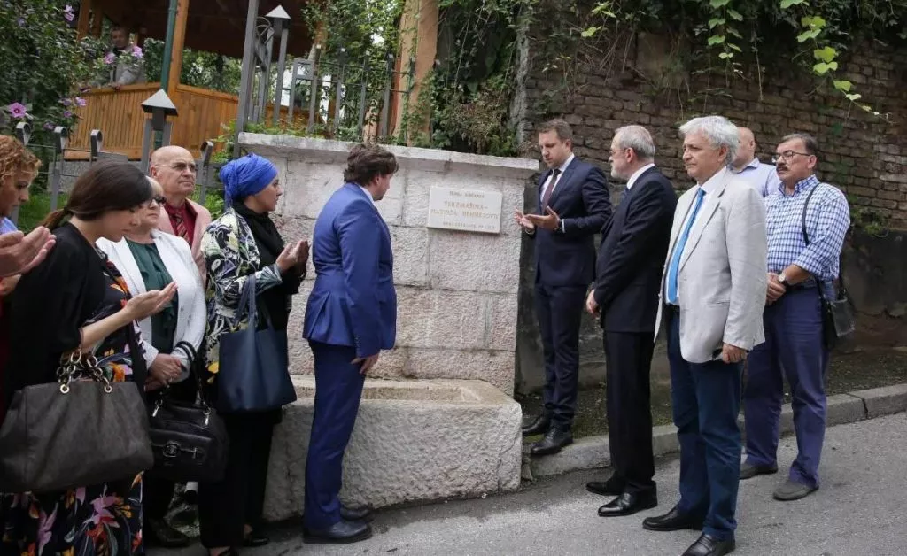 SARAJEVO, (Patria) - Delegacija Grada Sarajeva predvođena gradonačelnikom Abdulahom Skakom danas je otkrila spomen-ploču na česmi u Terzibašinoj ulici u znak sjećanja na Hatidžu Mehmedović, majku Srebrenice, koja će danas biti ukopana.