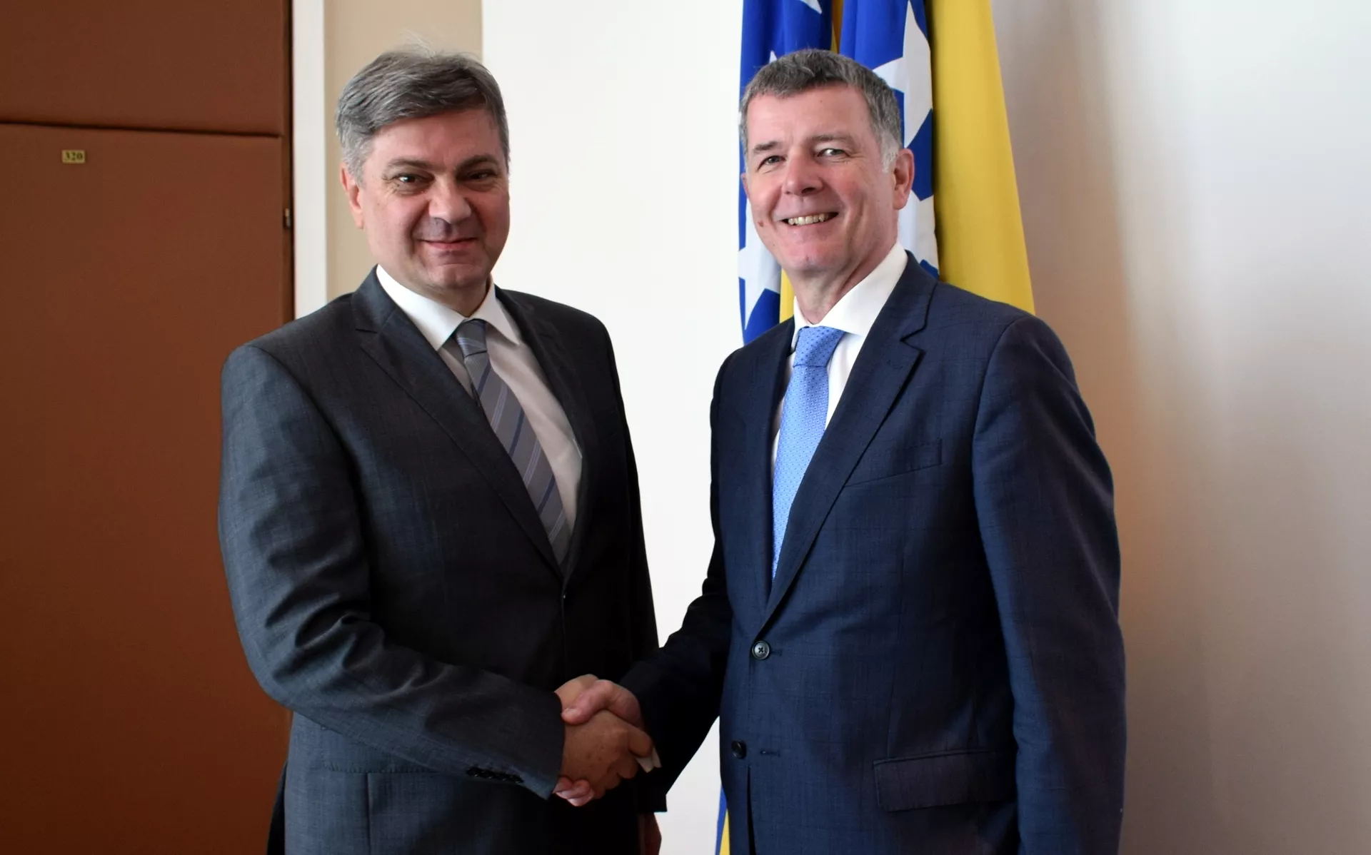 SARAJEVO, (Patria) - Predsjedavajući Vijeća ministara BiH Denis Zvizdić razgovarao je danas u Sarajevu sa direktorom za politička pitanja Ministarstva vanjskih poslova Ujedinjenog Kraljevstva Velike Britanije i Sjeverne Irske Richardom Mooreom o predstojećem samitu o zapadnom Balkanu, koji će se u okviru Berlinskog procesa održati 9. i 10. jula u Londonu.