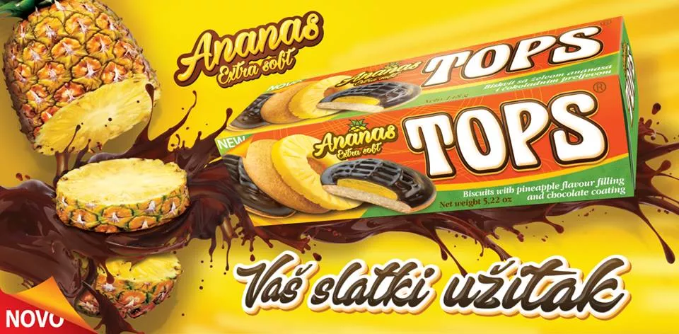 - Ranije smo najavljivali inovacije kada je riječ o brendu Tops. Ovo je jedna od njih, a nastala je u cjelosti u odjelu za razvoj naše kompanije. Novi okus nastao je na osnovu istraživanja tržišta koje nam je pokazalo da bi ananas bio novost i najbolji izbor. Nema ga u kategoriji biskvita i pokazao se kao izvrsna kombinacija sa čokoladom. Ubijeđeni smo da će Tops Ananas biti apsolutni hit ovog ljeta - izjavila je Selma Jusufović brand manager u kompaniji AC Food.