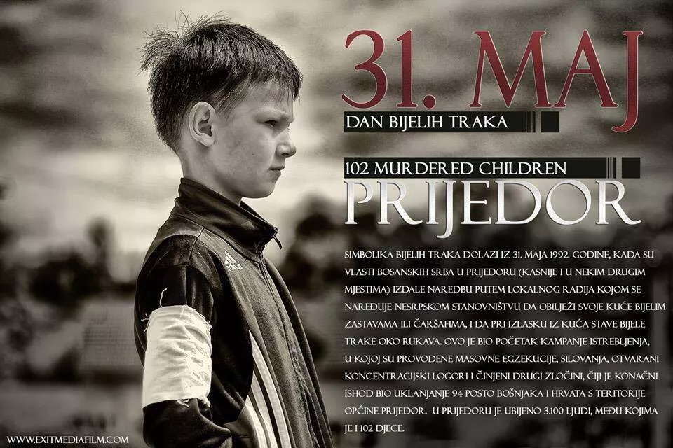 Gradske vlasti Prijedora i dalje odbijaju postaviti spomen-obilježje ubijenoj djeci Prijedora. Bijele trake koje su Bošnjaci morali staviti oko ruke pokazuje namjeru da se jedan narod obilježi i istrijebi.