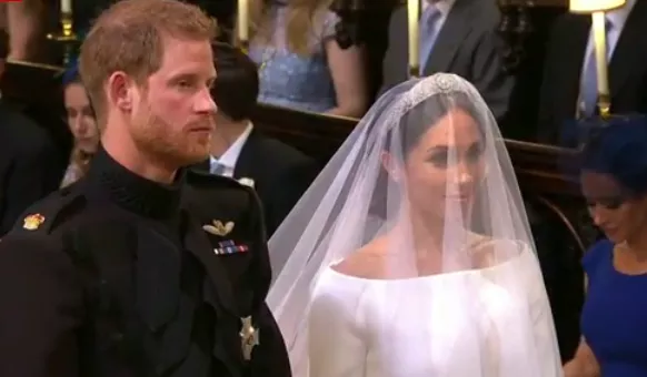 Ceremoniju je pred oko 600 zvanica vodio nadbiskup Canterburyja Justin Welby. Meghan Markle stigla je do kapele Rolls-Royceom prešavši 16 kilometara od hotela, a sa obje strane puta pozdravljale su je hiljade ljudi.