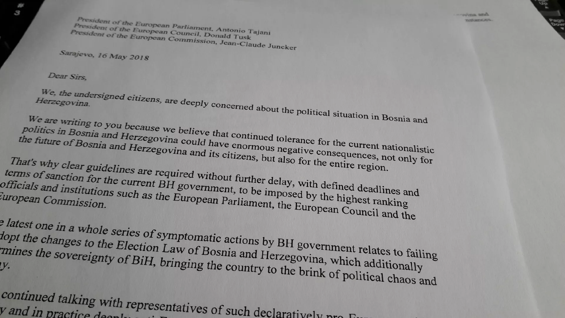 Grupa nezavisnih intelektualaca i novinara čelnike Evropske unije obavještavaju da izražavaju duboku zabrinutost zbog političkog stanja u Bosni i Hercegovini. Navode da se čelnicima Evropske unije obraćaju sa uvjerenjem „da bi nastavak toleriranja aktuelnih nacionalističkih politika u Bosni i Hercegovini, mogao imati nesagledive posljedice, ne samo po budućnost Bosne i Hercegovine i njenih građana, već i za cijeli region, pa i šire.“