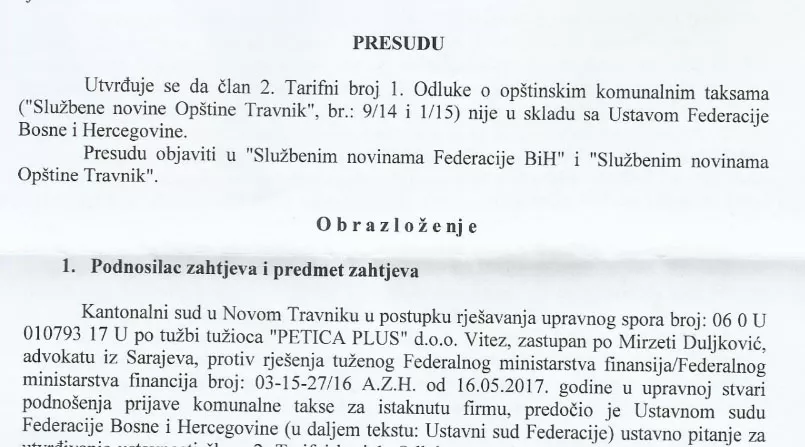 NOVI TRAVNIK, (Patria) - Ustavni sud Federacije BiH presudio je u korist kladionica „Petica plus“ u slučaju spora s općinom Novi Travnik.