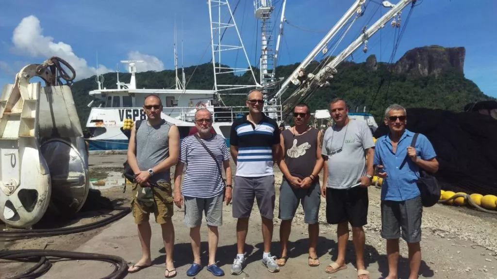 NEOČEKIVANI SUSRET: Već prvi dan, dok smo u Koloniji, drugom po veličini gradu na Pohnpeiu, obilazili agencije kod kojih bismo enentualno mogli unajmiti brod i opremu, doživjeli smo neočekivan susret. Imali smo sreću da upoznamo dvojicu susretljivih hrvatskih pomoraca, kapetana Dragana Bozajića i navigatora Zvonka Kurtina, obojica iz gostoprimljivog Zadra. Još veće oduševljenje doživjeli smo kada smo saznali da naši „zemljaci“ iz Hrvatske navigaju na ribarskim brodovima kompanije koja pripada Srbijancu Marku Kamberu, ugodnom mladom čovjeku, koji je ovaj uspješni biznis naslijedio od svog oca i vjerovatno zauvijek bacio životno sidro u vode Micronesie.