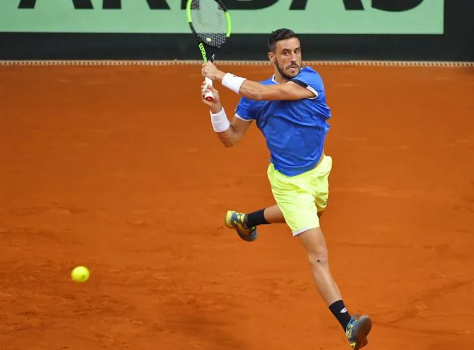 Džumhur se već u prvom servis gemu susreo s problemima. Fabbiano je imao break loptu, ali je naš teniser uspio da osvoji naredna tri poena i sačuva svoj servis.
