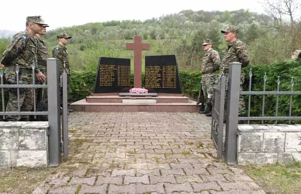 KONJIC, (Patria) - Polaganjem vijenaca kod spomen-obilježja u Trusini i molitvom danas je obilježena 25. godišnjica od ratnog zločina u tom konjičkom selu kada su pripadnici Armije RBiH ubili 22 Hrvata, među kojima je bilo i civila.