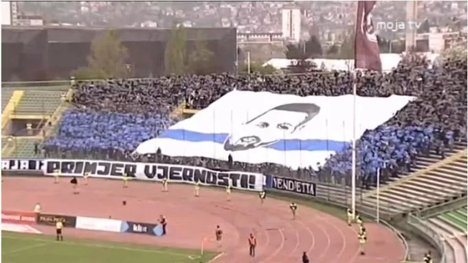 SARAJEVO, (Patria) - Navijači FK Željezničar popularni Manijaci danas su pripremili koreografiju tokom 114. vječitog derbija koji se odigrava na stadionu Asim Ferhatović Hase. Navijači su između sebe raširili veliki transparent sa likom Mirze Raščića. Manijaci su na ovaj način odali počast Raščiću kojeg je 16. aprila 2015. godine ubio Izudin Tahirović.