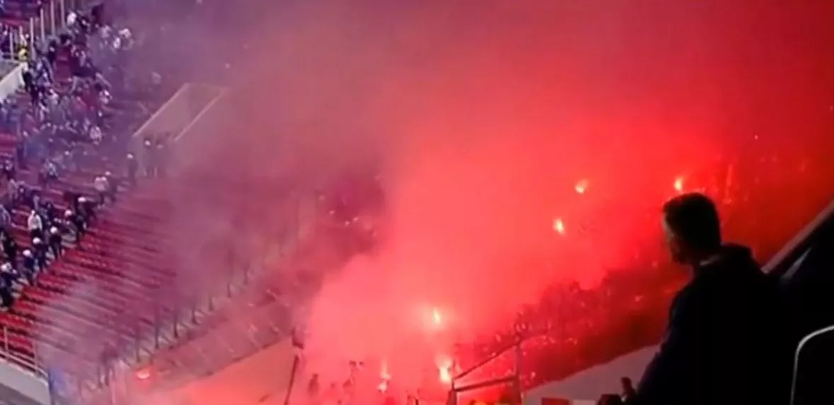 Bakljada je uslijedila nakon gola Miralema Pjanića, a utakmica je prekinuta nekoliko minuta.
