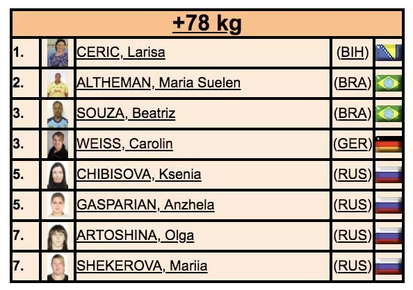 Larisa Cerić u finalu je pobijedila brazilsku predstavnicu Mariju Suelen Altheman, i tako se okitila prvim Grand Slam zlatom u svojoj dosadašnjoj karijeri u kategoriji +78 kila.