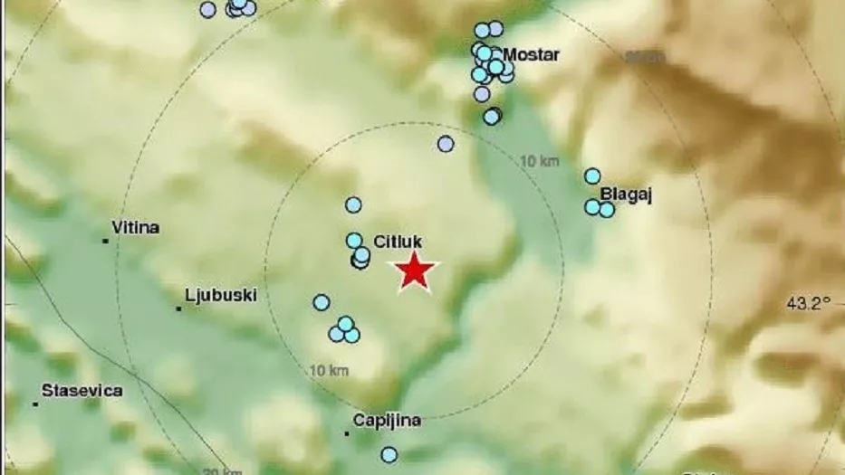 ČITLUK, (Patria) - Sa epicentrom tri kilometra od Čitluka u Hercegovini registrovan je blagi zemljotres u 07:00 sati, 12. marta 2018. godine, no dovoljno jak da uznemiri stanovnike ovog hercegovačkog grada i okolnih mjesta.