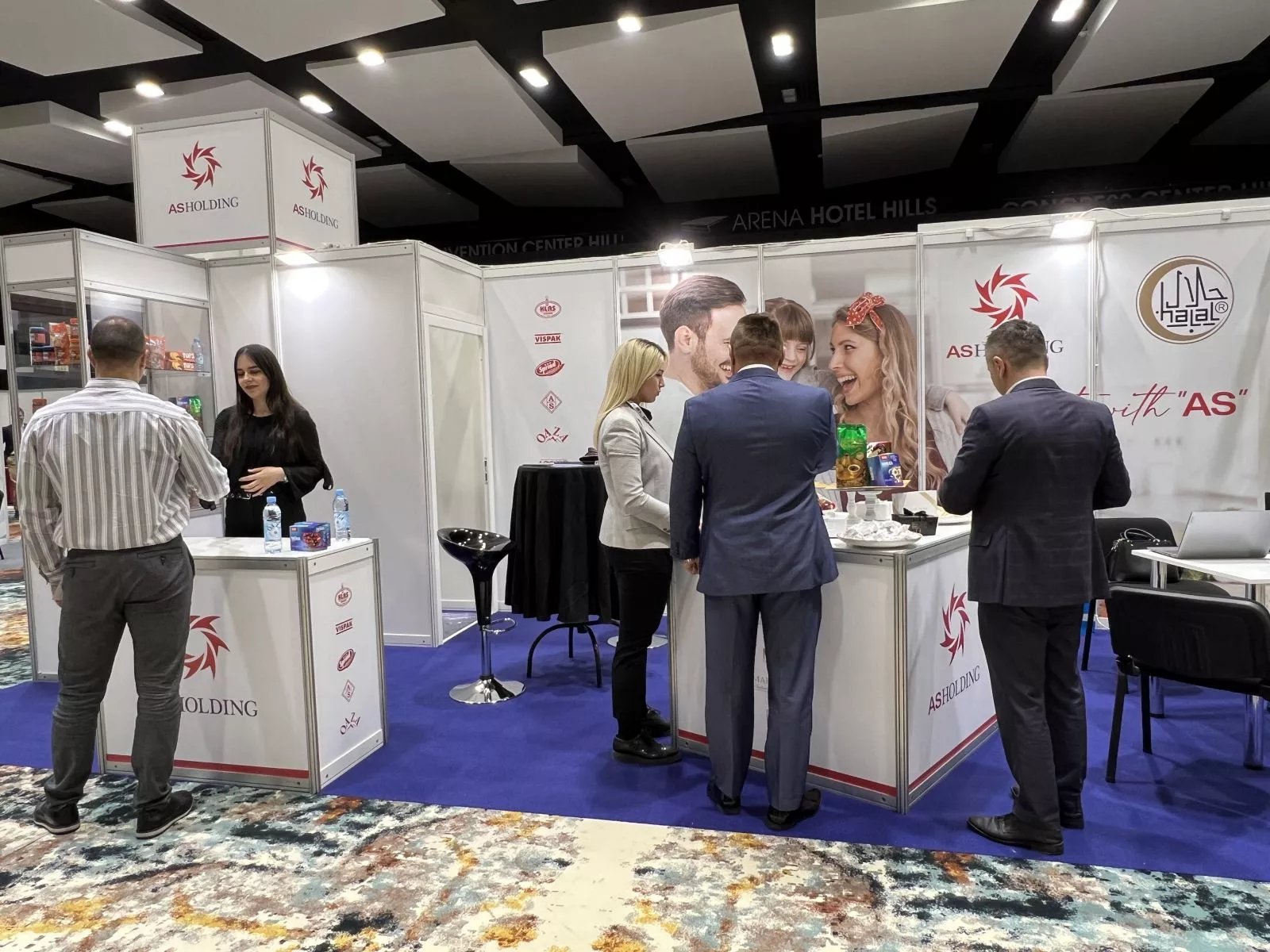 prostor AS Holdinga na Halal Sajmu u Sarajevu. Trodnevni sajam održava se u hotelu Hills, a interesovanje za priznatim, domaćim brendovima ni ove godine ne jenjava. Halal certificirani proizvodi kompanija Klas, Vispak, AS, AC Food, Solana, Sprind, ZiM i MP Ljubače, sada su već tradicionalno dijelom ove velike i značajne sajamske priče.
