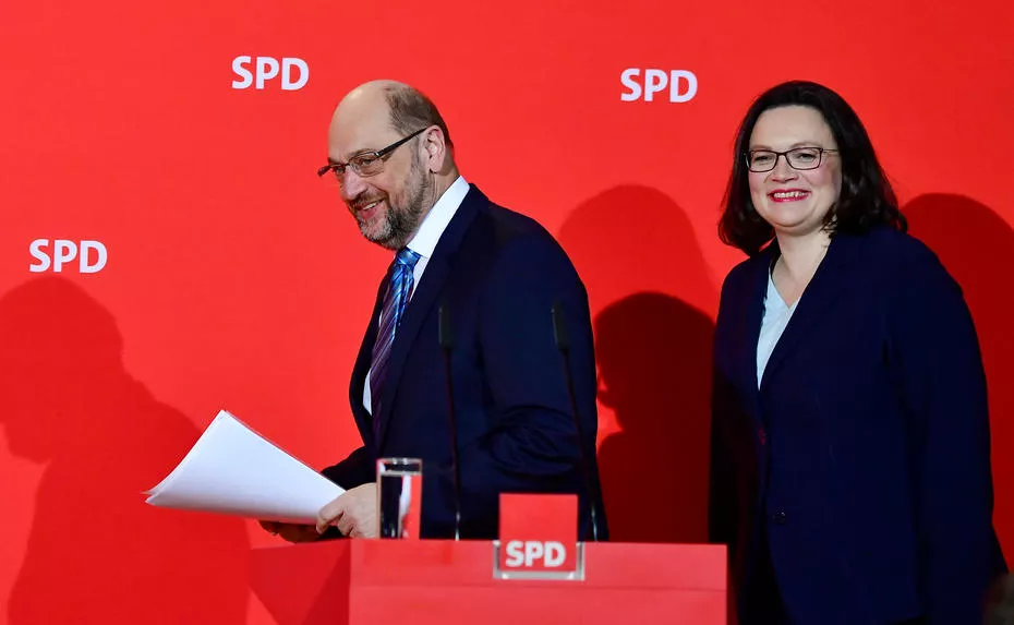 U jeku rasprave o koaliranju s Unijom na vrhu SPD-a je došlo do kadrovskih previranja u toku kojih se sa funkcije predsjednika stranke povukao Martin Schulz koji je trebao biti i novi ministar vanjskih poslova. Za njegovu nasljednicu bi na stranačkom kongresu u aprilu trebala biti izabrana Andrea Nahles.