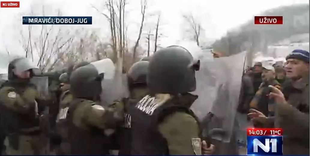 BiH, (Patria) - Satima već traje protest demobilisanih boraca u Mravićima kod Doboja u neposrednoj blizini magistralnog puta M17, ali kada su pokušali zaustaviti saobraćaj došlo je do naguravanja s policijskim snagama.