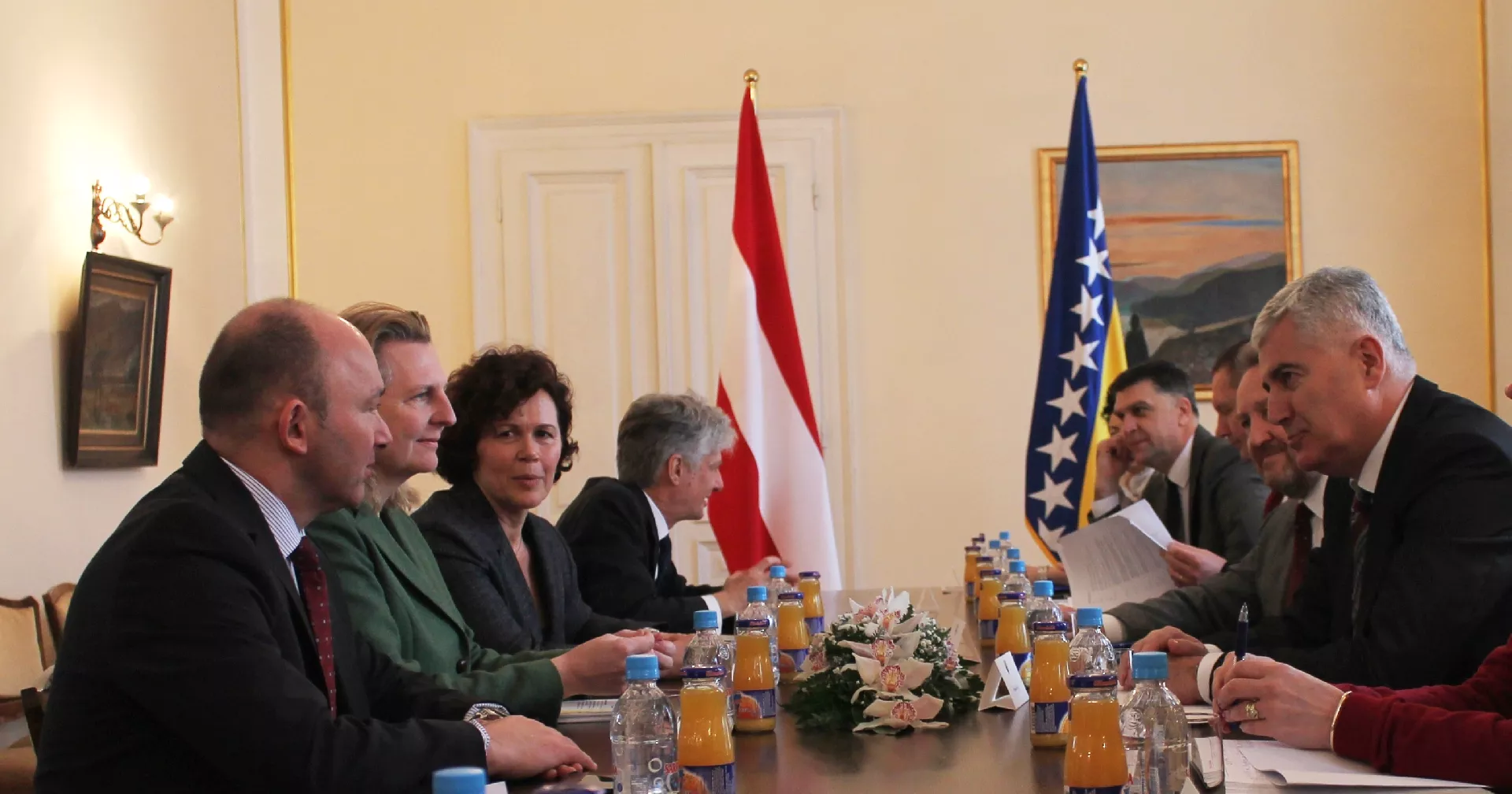 Članovi Predsjedništva BiH su informirali ministricu Kneissl o aktuelnoj političkoj situaciji u zemlji, s posebnim osvrtom na euroatlantske integracije. Istaknuli su opredjeljenje za nastavak reformskog procesa, te potrebu da se ulože dodatni napori kako bi se dinamizirale aktivnosti na ispunjenju uvjeta za predaju aplikacije za status kandidata za članstvo u Evropskoj uniji. Sagovornici su razmijenili mišljenja o izmjenama i dopunama Izbornog zakona, te izrazili opredjeljenje da se inteziviraju napori na postizanju dogovora po ovim pitanjima.