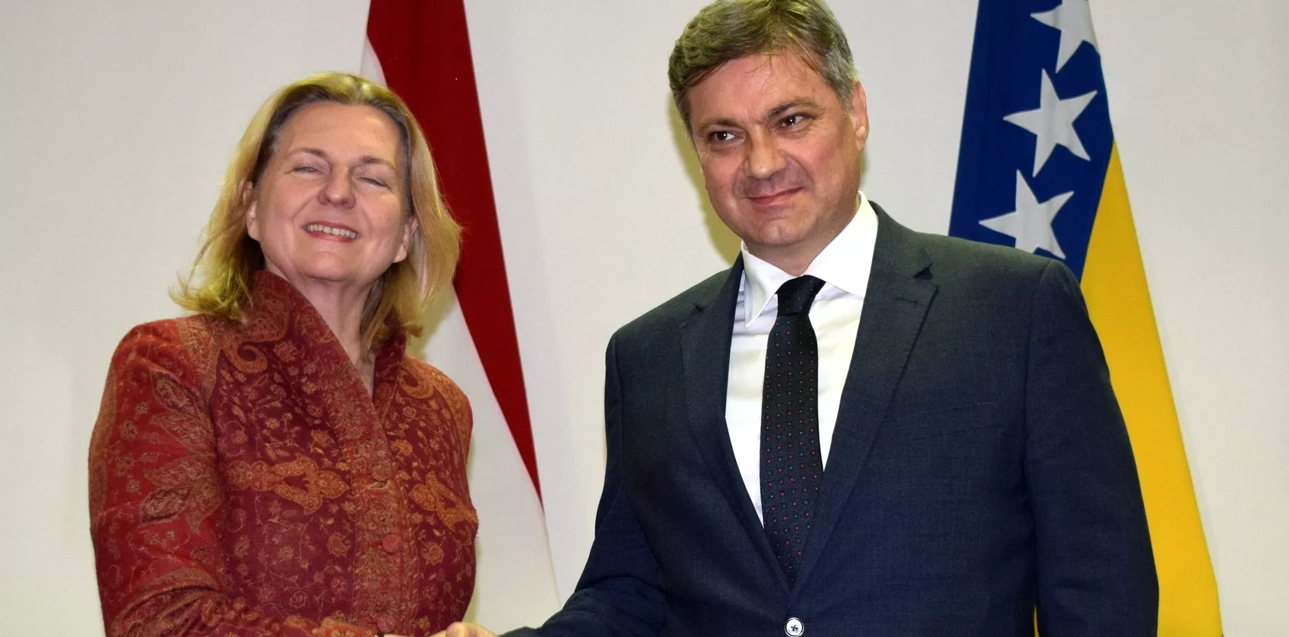Ministrica Kneissl je izrazila punu podršku Austrije reformskim procesima, evropskom putu BiH i politici proširenja EU na zemlje Zapadnog Balkana. Istaknula je da Austrija na Zapadnom Balkanu podržava teritorijalni integritet država, pomirenje, stabilnost i izgradnju demokratskih društava. Dodala je da Austriju ima poseban senzilibitet prema Bosni i Hercegovini s obzirom na historijske veze i činjenicu da u Austriji živi oko 160.000 ljudi sa područja BiH.