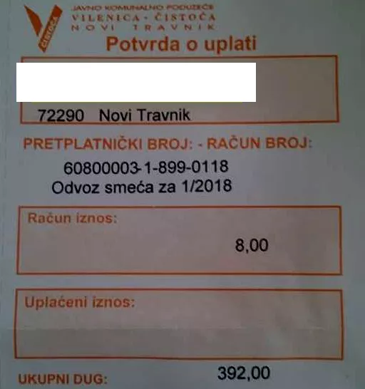 NOVI TRAVNIK, (Patria) – Oko 200 domaćinstava u Rostovu kod Novog Travnika dobili su visoke račune za odvoz smeća, iako, tvrde mještani, iz tog mjesta uopće nije bilo organiziranog odvoza otpada.