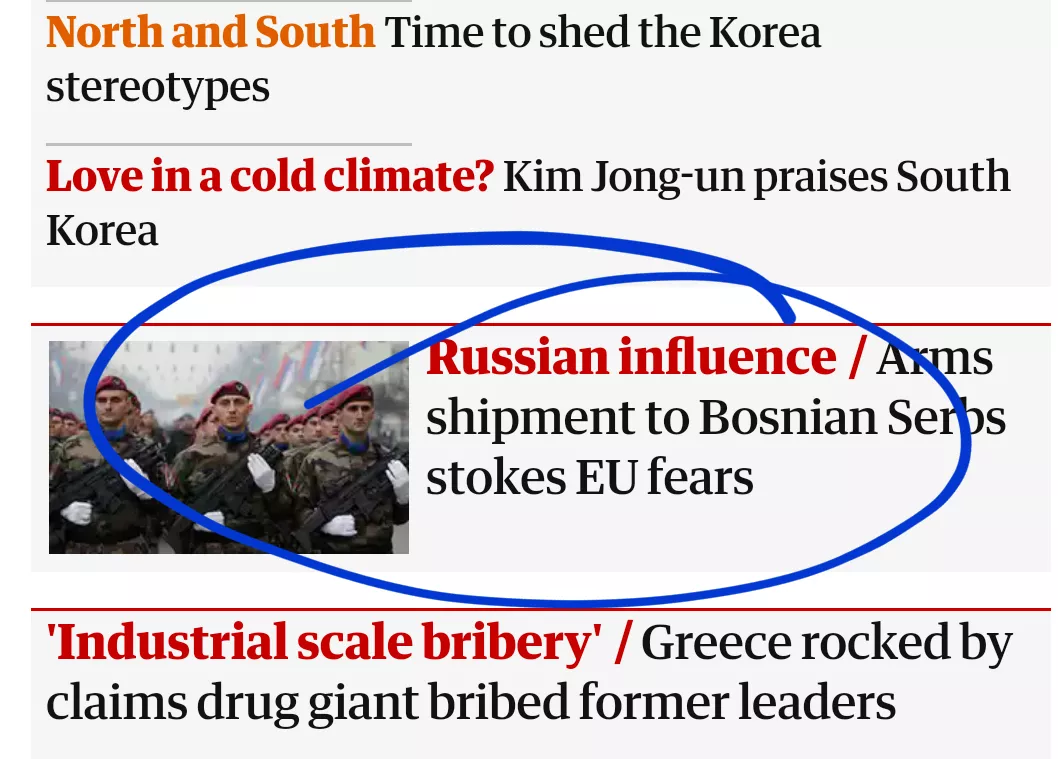 S druge strane, britanski magazin Guardian podsjetio je danas kako je MUP bh. entiteta Republika Srpska kupio 2.500 automatskih pušaka, „što je zabrinjavajuće s obzirom na utjecaj Rusije na taj dio Bosne i Hercegovine“.