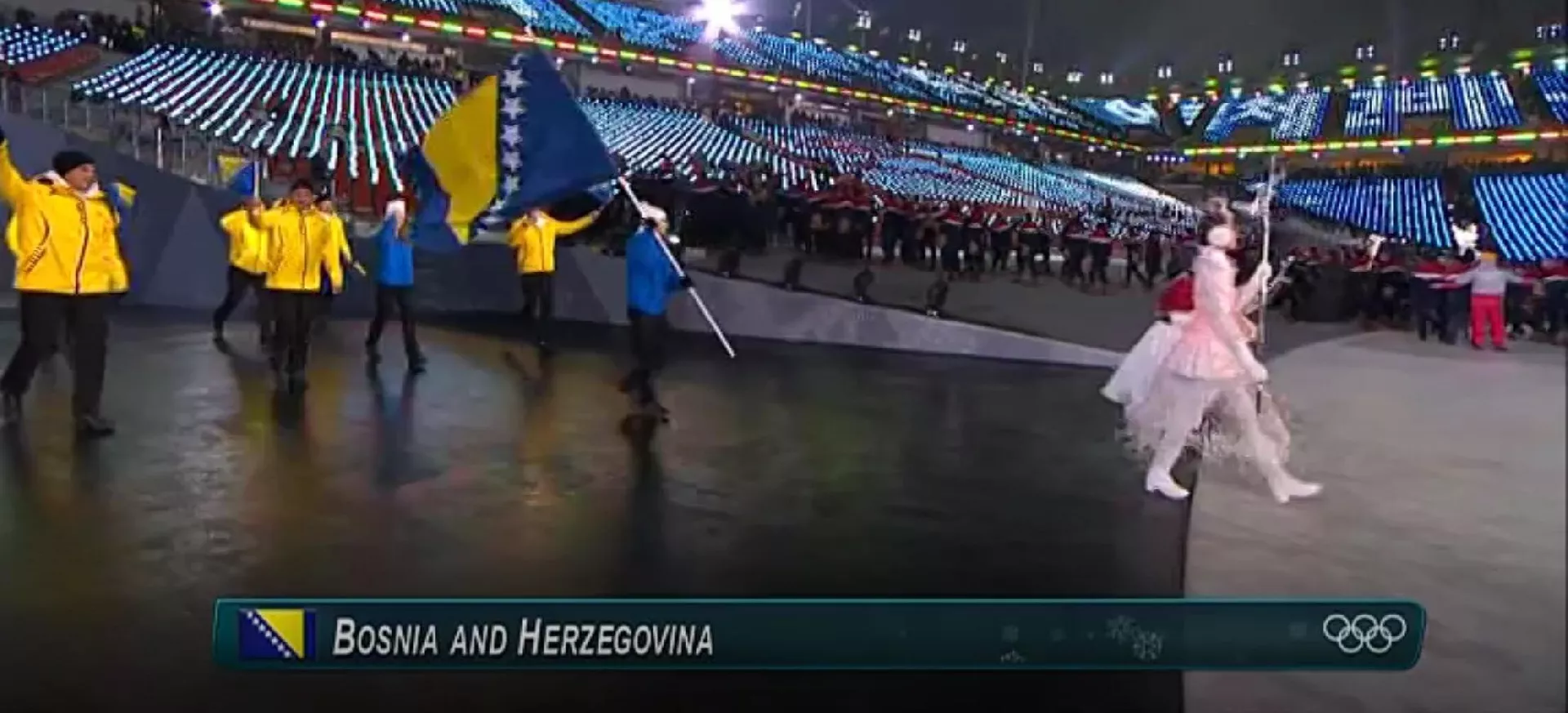 Zastavu Bosne i Hercegovine na otvaranju nosila je skijašica Elvedina Muzaferija.