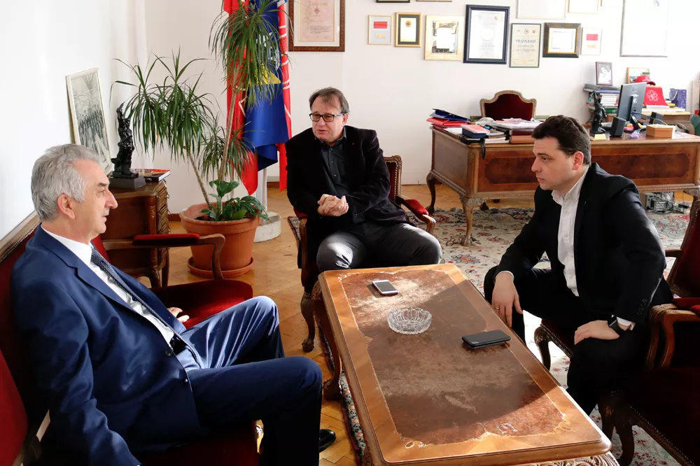 SARAJEVO, (Patria) - Predsjednik SDP BiH Nermin Nikšić i predsjednik Glavnog odbora SDP BiH Saša Magazinović, susreli su se sa ministrom vanjske trgovine i ekonomskih odnosa BiH Mirkom Šarovićem.