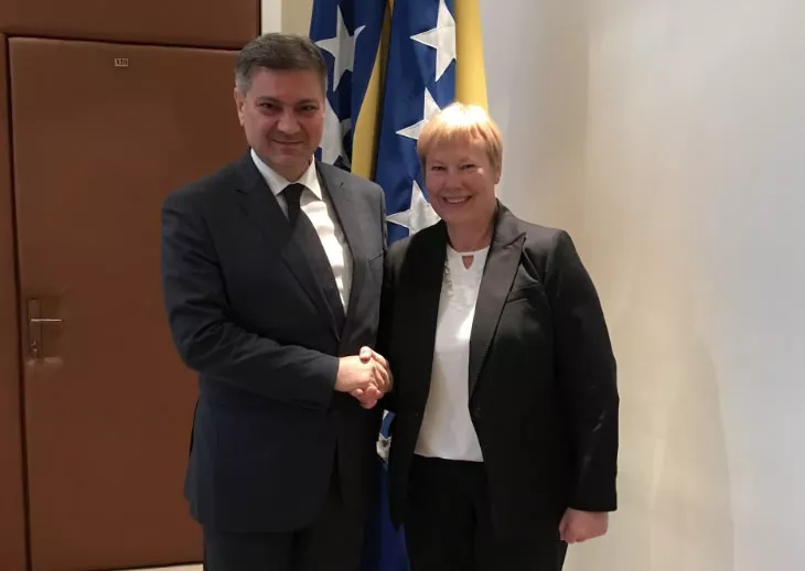 Predsjedavajući Vijeća ministara BiH Denis Zvizdić primio je ambasadoricu Savezne Republike Njemačke u BiH Christianu Hohmann i informirao je o aktuelnim ekonomskim i političkim pitanjima, kao i o aktivnostima koje se provode na finaliziranju odgovora iz Upitnika Evropske komisije.