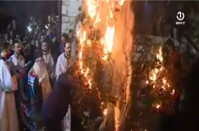 SARAJEVO, (Patria) - Mitropolit dabrobosanski Hrizostom služio je večernje u Staroj pravoslavnoj crkvi na Baščaršiji, nakon čega je obavljeno nalaganje badnjaka.
